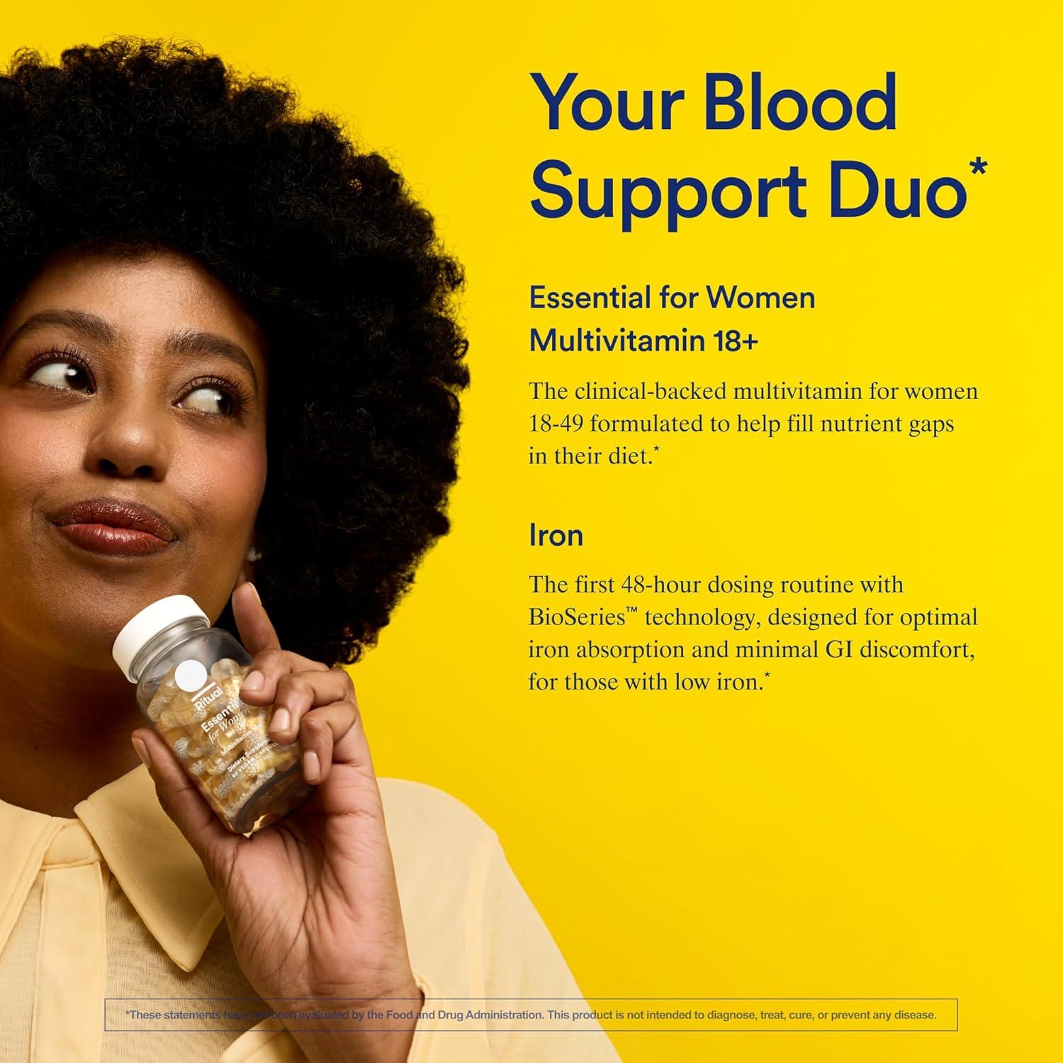Ritual’s Blood Support Duo with Ritual’s New 48-Hour Iron BioSeries and Essential Multivitamin for Women 18+ to Support Foundational Health*, 30 Days Supply