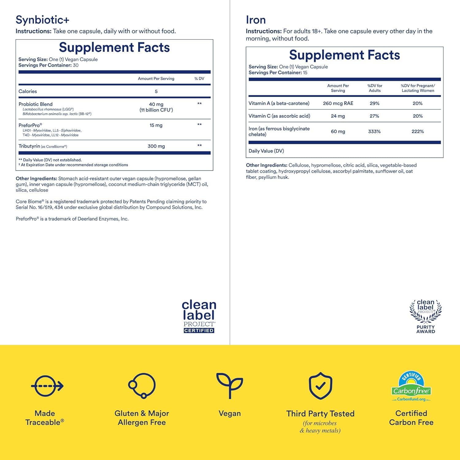Ritual’s Iron Stomach Support Duo with Ritual’s New 48-Hour Iron BioSeries and Synbiotic+ for Daily Gut Health Support, 30 Day Supply*