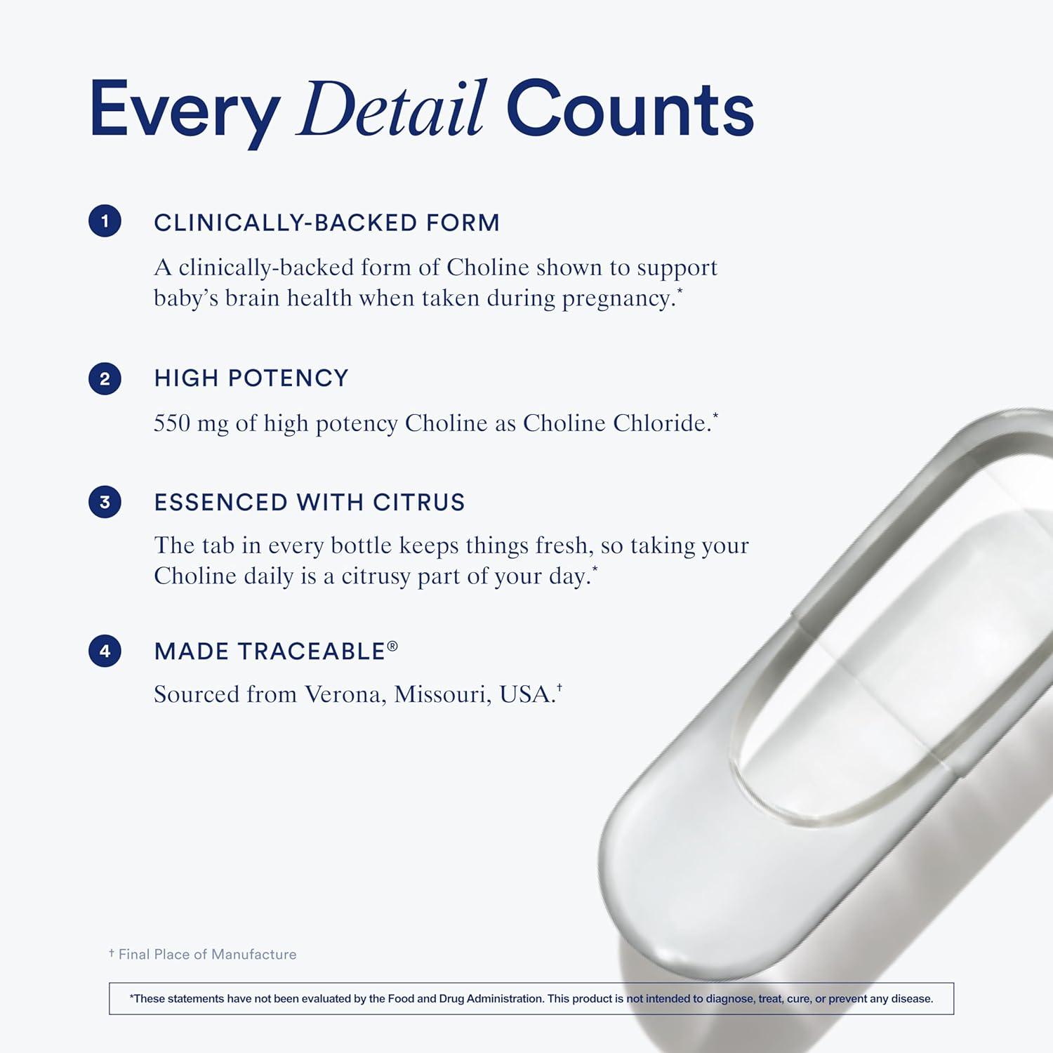 MADE TRACEABLE:Our world-class scientists scoured the globe for high quality ingredients when formulating our Natal Choline. Our formula includes clinically-studied, high potency Choline as Choline Chloride to support brain health, sourced from Missouri, USA. Our Natal Choline is vegan, sugar-free, gluten-free, dairy-free, nut-free, soy-free, and formulated without stevia, sugar alcohols, and artificial colors, flavors, or sweeteners.*