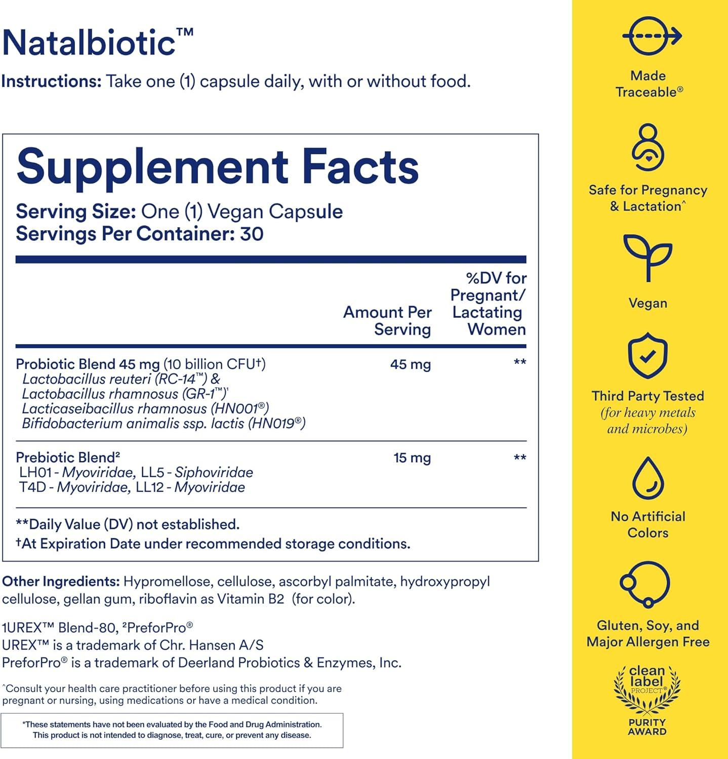 Ritual Natalbiotic™ Microbiome Support†* Biotics for Mom & Baby. Formulated to Support Digestive Health, Vaginal Health, and Baby’s Immune Health.* Designed with OB/GYNs‡. Non-GMO, Vegan, 30 Days